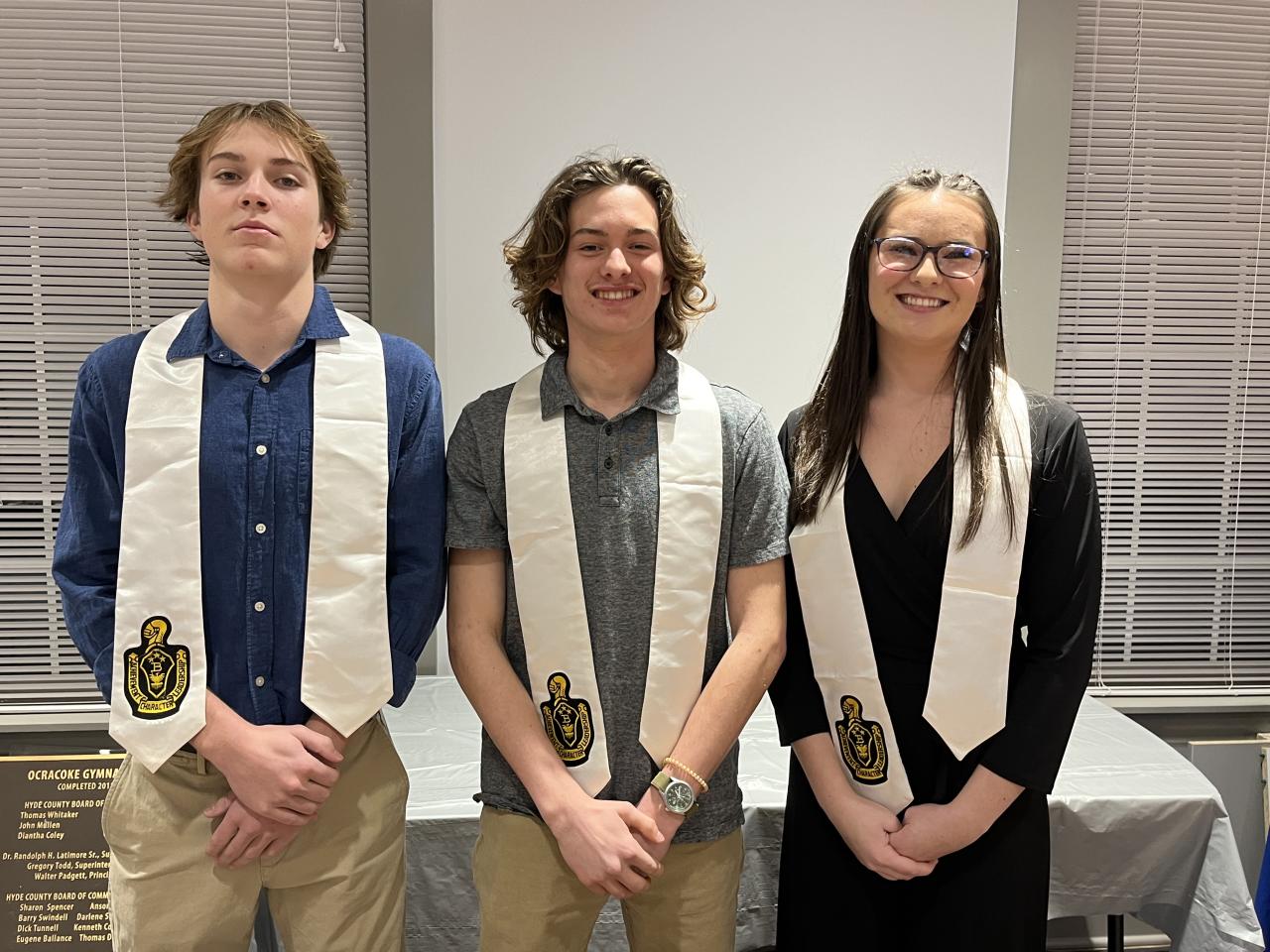 -Image: Above is a photo of our President, Vice President and the Secretary of the Ocracoke School Beta Club. The second photo is of a meeting that was held to plan the game night.