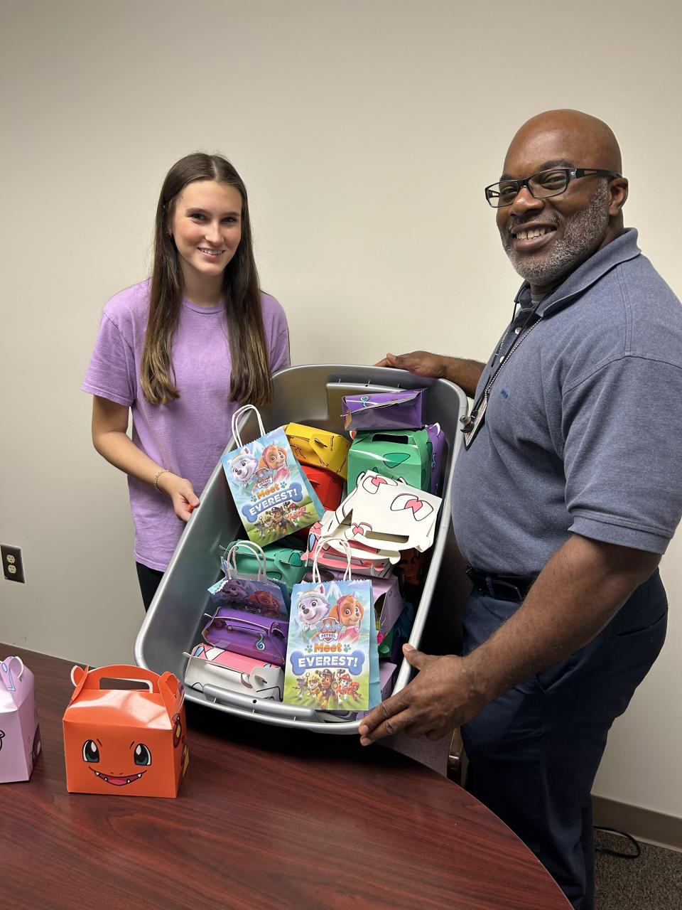 On the day of the event I gathered the children’s goodie boxes and met with several of the social workers that I had previously scheduled an appointment with to give them the boxes. In the picture is Child Protective Social Worker, Ava Williams.