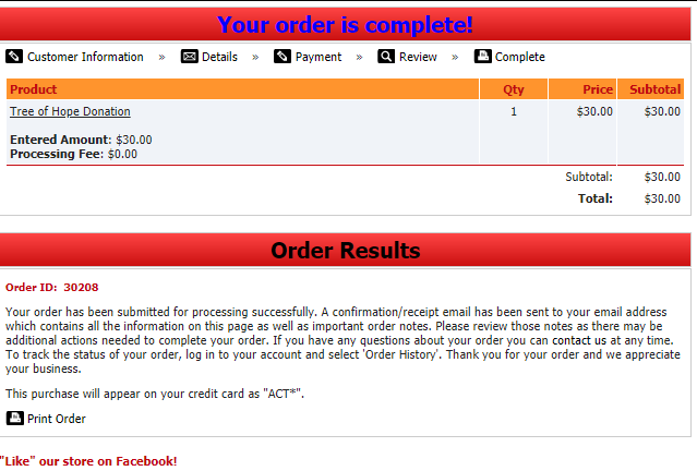 Tree of Hope Donation ($10 = 1 hour)