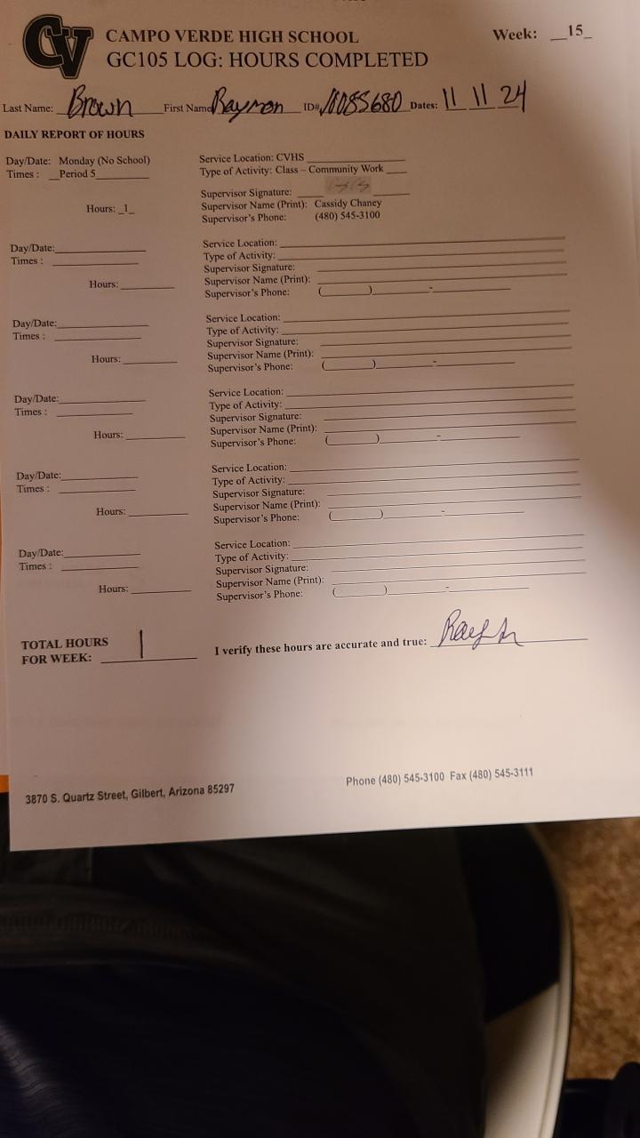 Week 15 Work Log 11/12-11/17