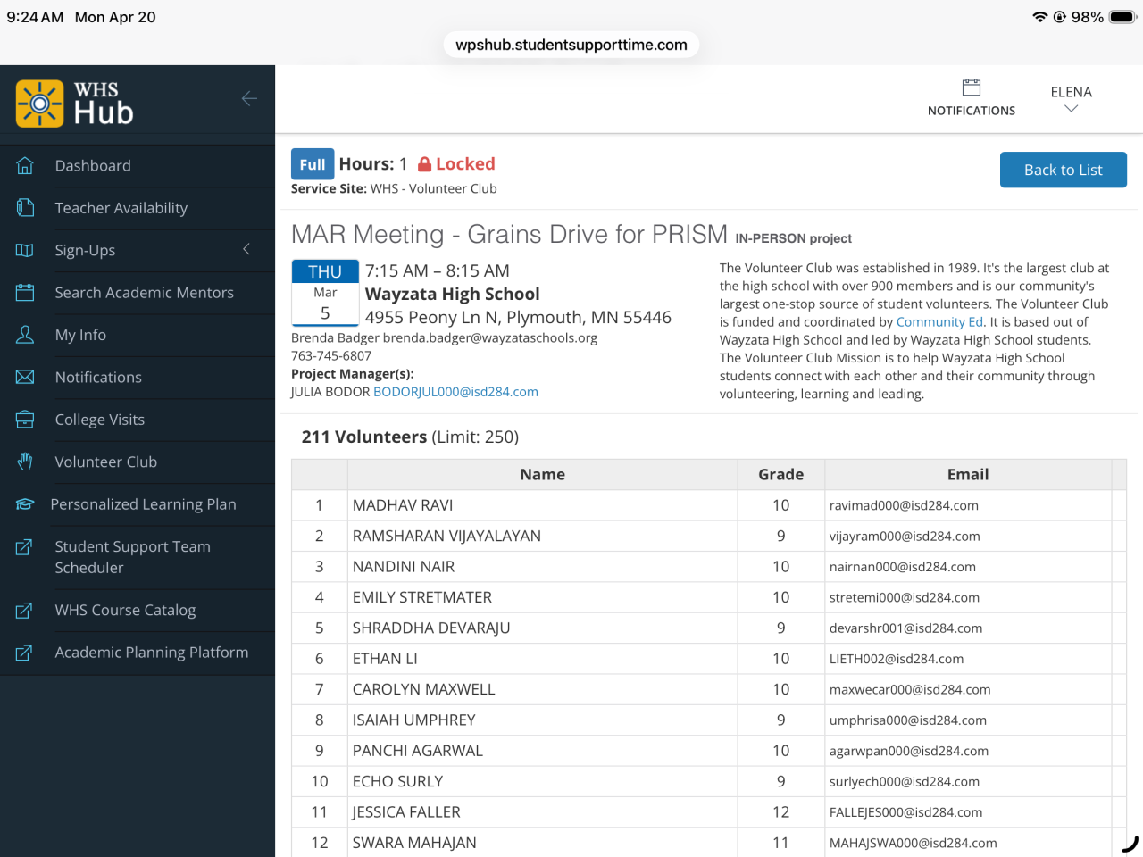 Volunteer Club of Wayzata High School