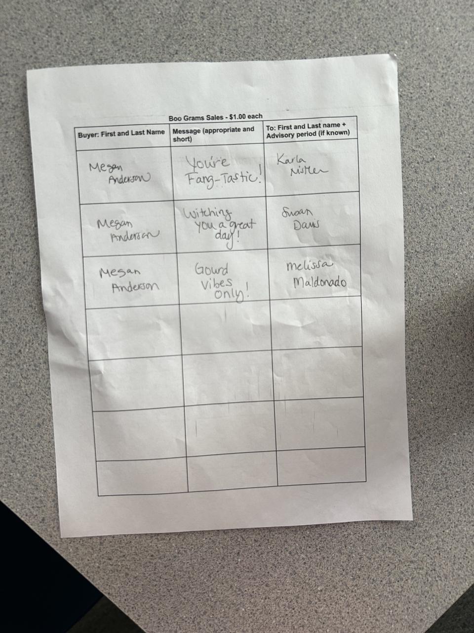 Selling Boo Grams