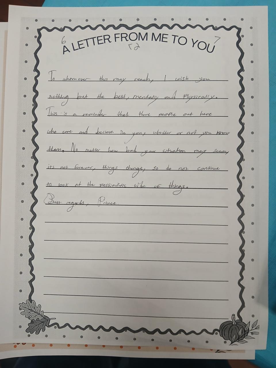 Sophomore Fall into OB PRIDE Letter Writing Event