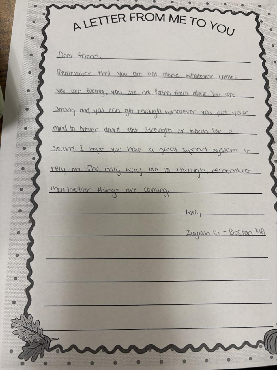 Sophomore Fall into OB PRIDE Letter Writing Event