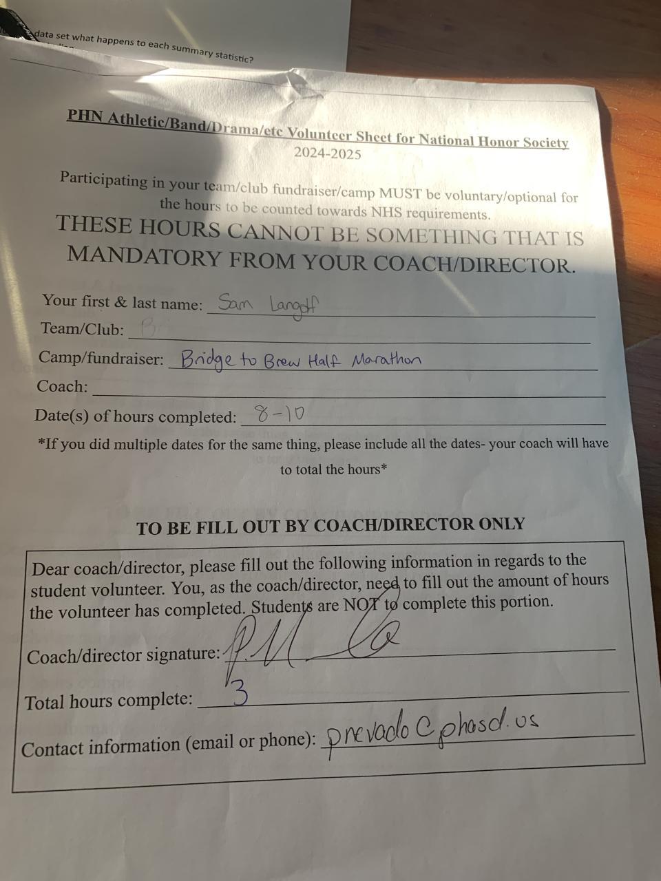 PHN National Honor Society