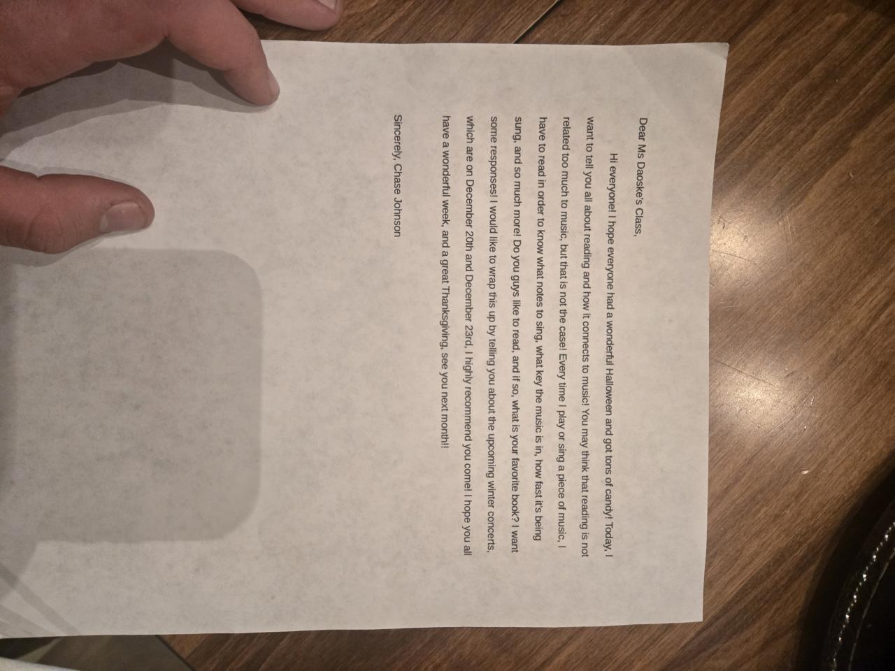 November Pen Pal Letter