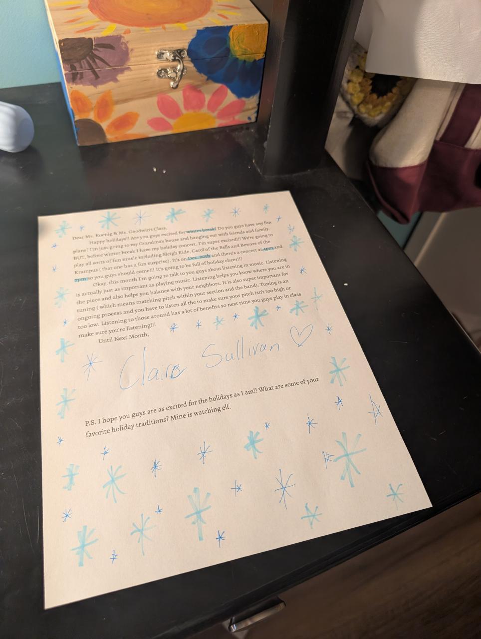 Tri-M Music Honor Society » December Pen Pal Letter