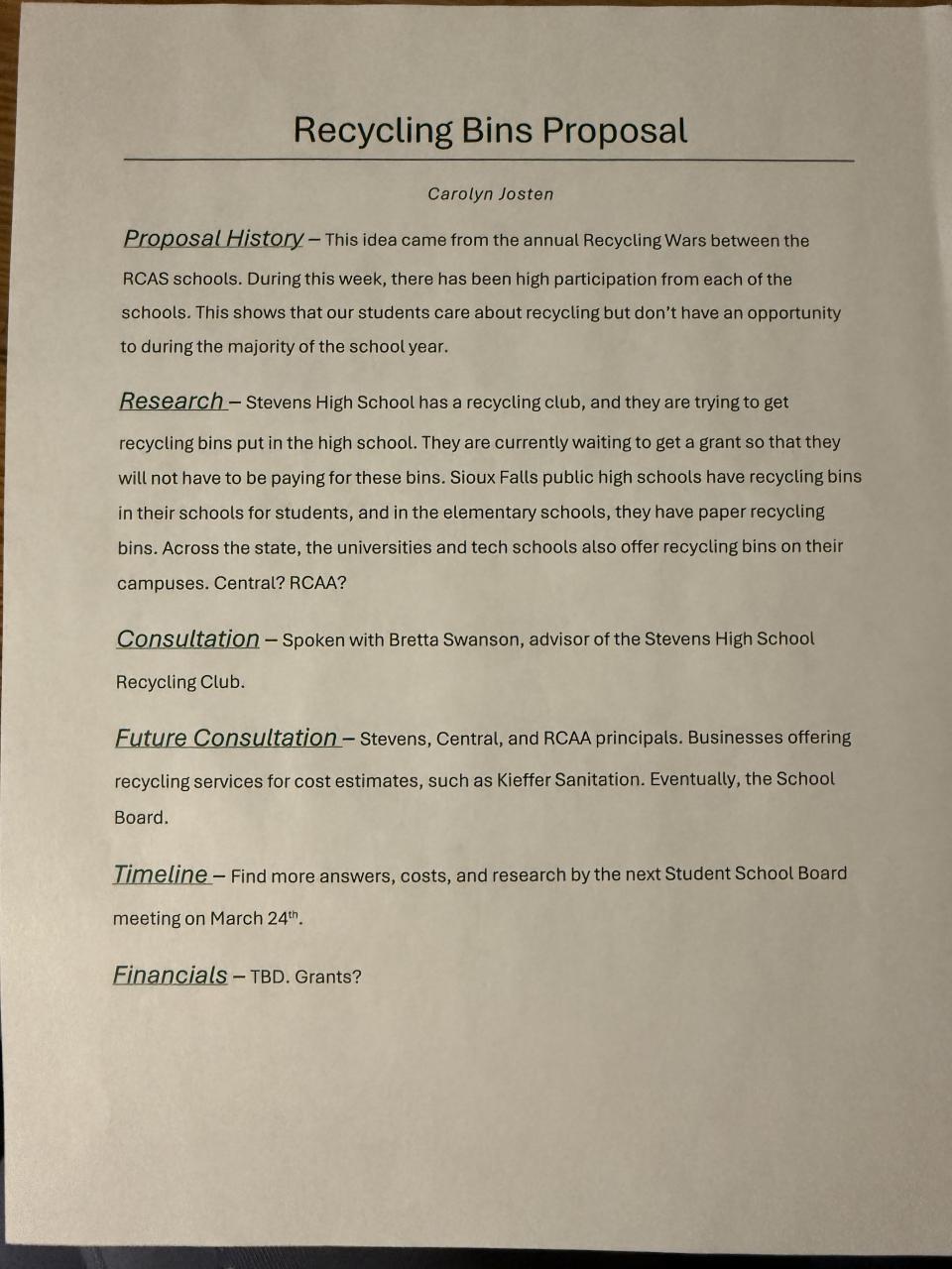 RCAS Student School Board