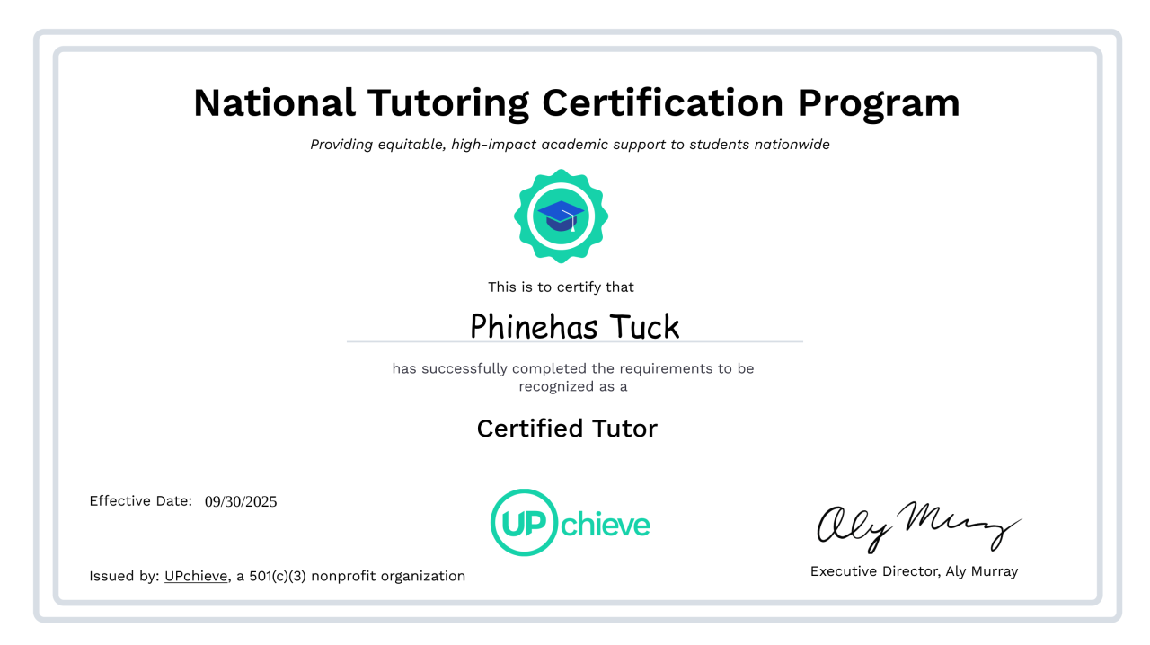 UPchieve: Nationally Certified Tutors