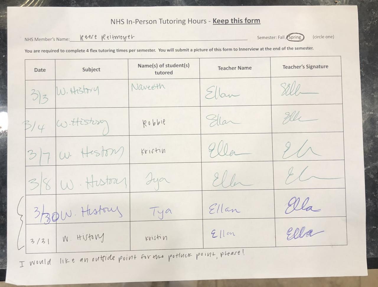 Senior - Tutoring/Homework Helpline Sheet
