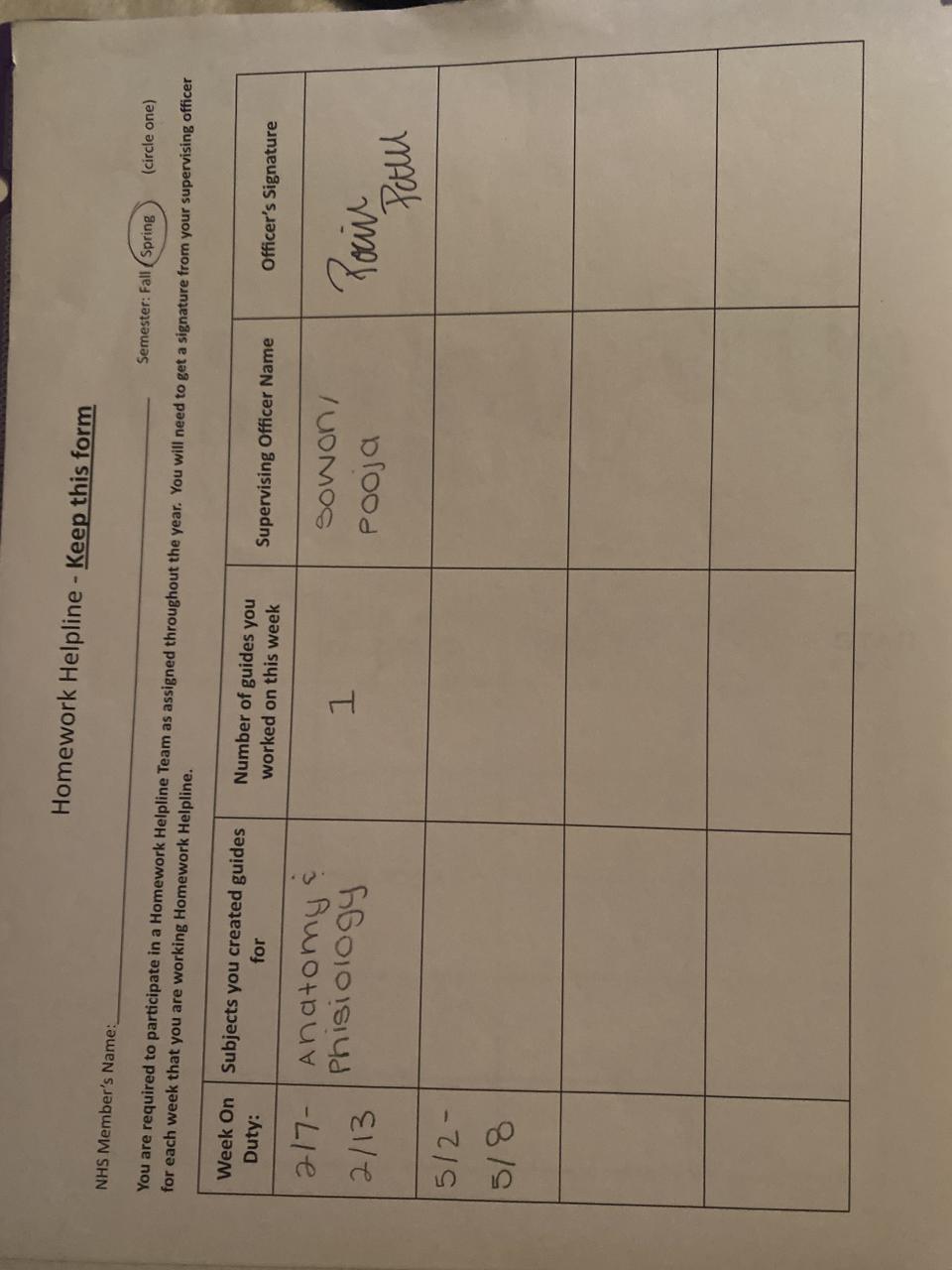 Senior - Tutoring/Homework Helpline Sheet