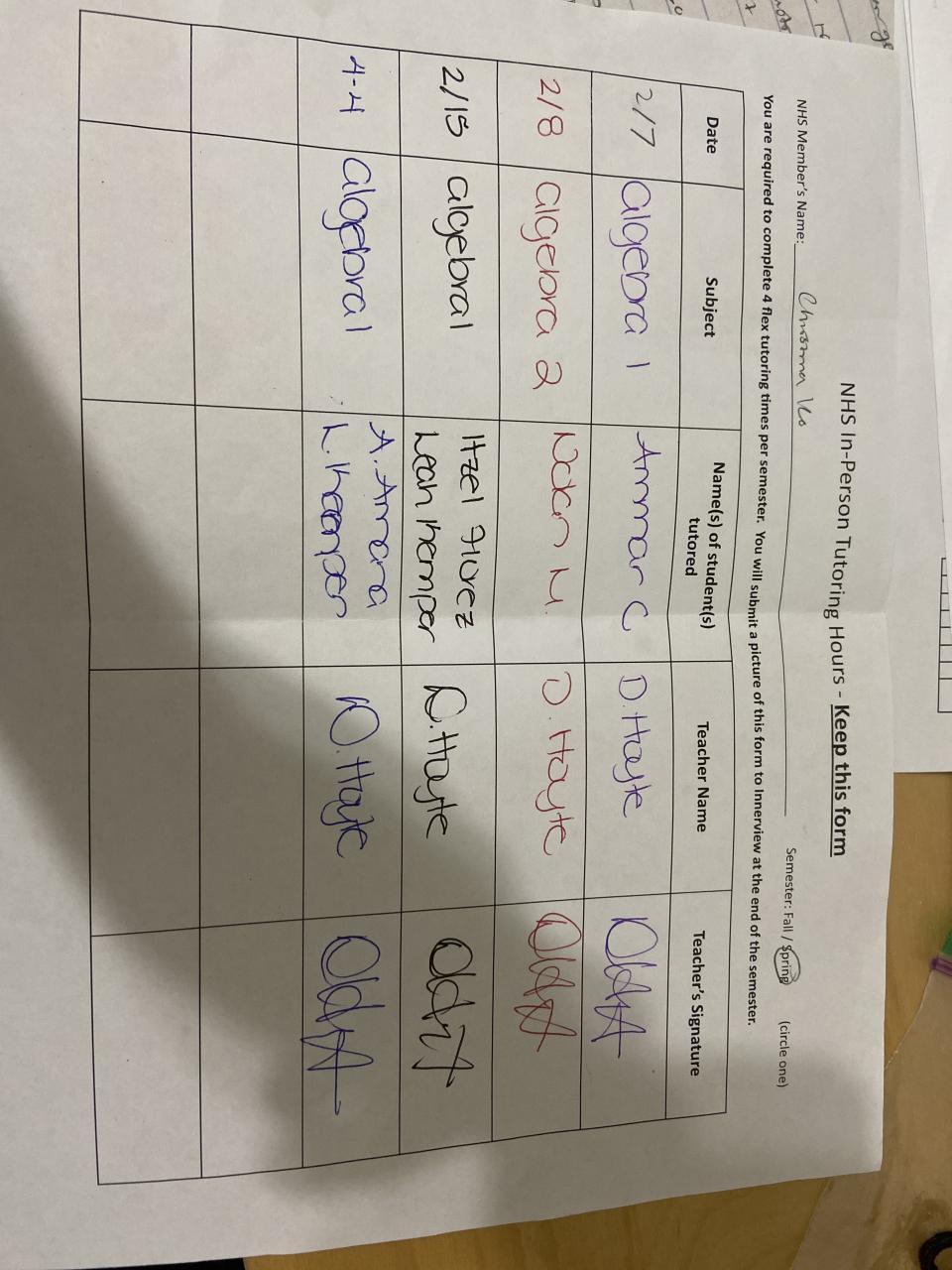 Senior - Tutoring/Homework Helpline Sheet
