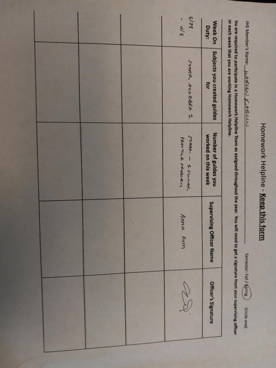 Senior - Tutoring/Homework Helpline Sheet