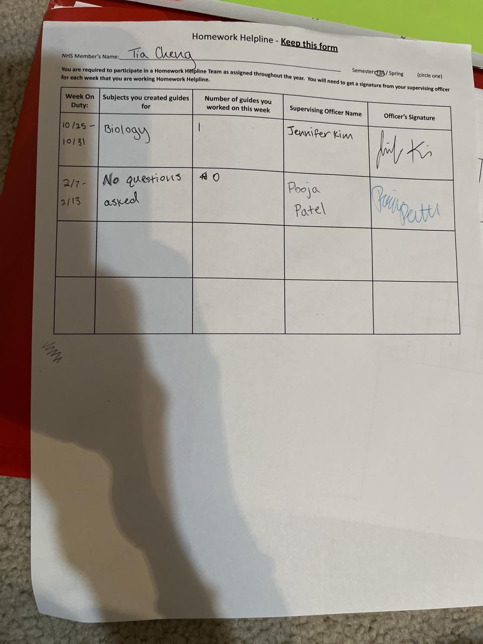 Senior - Tutoring/Homework Helpline Sheet