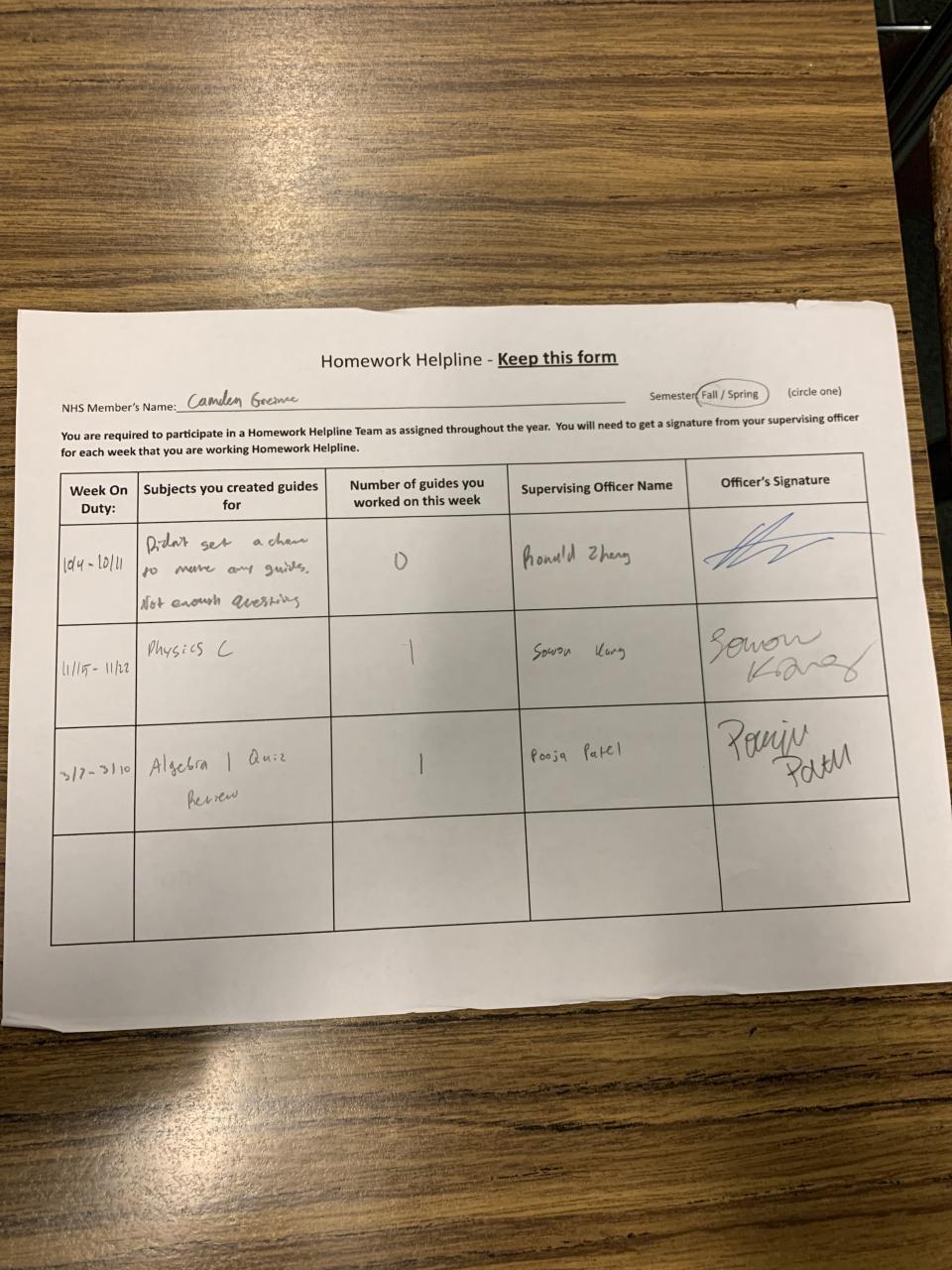 Senior - Tutoring/Homework Helpline Sheet