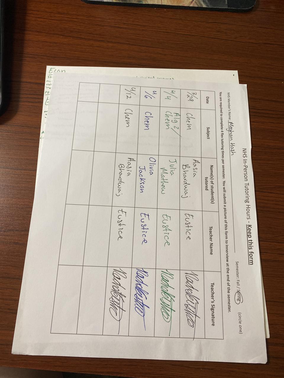 Senior - Tutoring/Homework Helpline Sheet