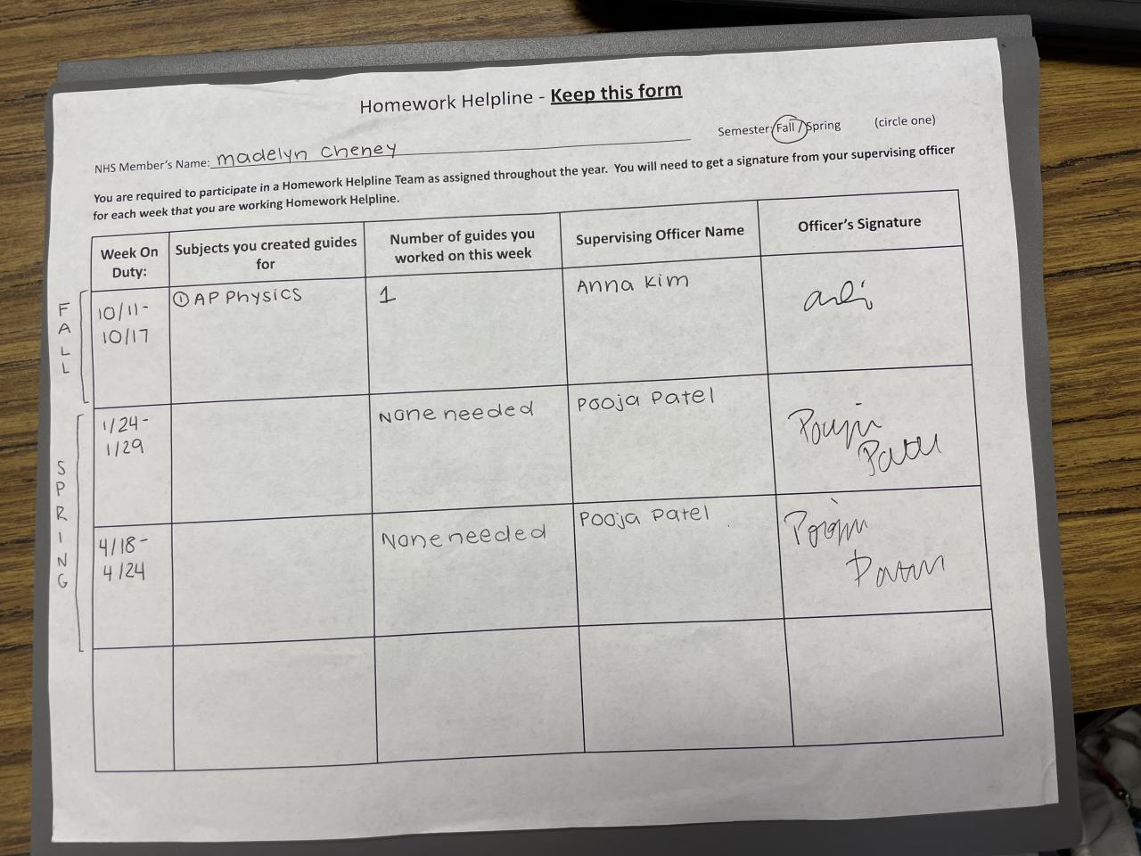 Senior - Tutoring/Homework Helpline Sheet