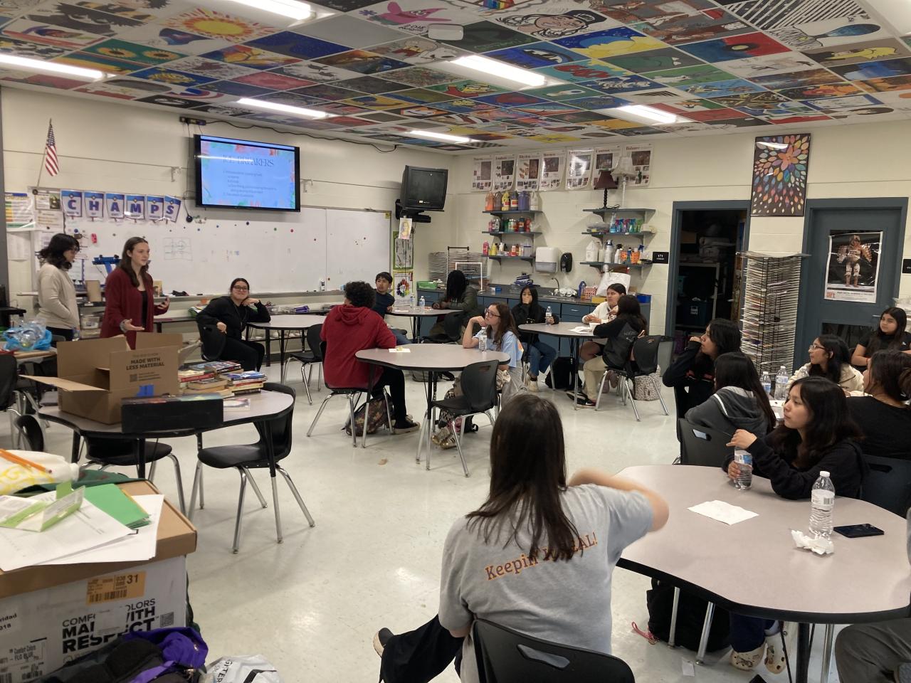 Met with art teacher to plan out dates, wrote a grant for the project (received grant money shown in picture), created lesson plans for each day, and bought materials.