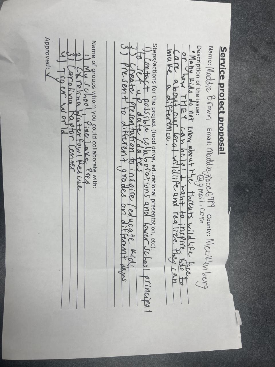 Many kids do not know about the threats wildlife faces or how they can help. My service project will be an educational and interactive “class” with kids from the lower school of pine lake prep. I will partner with local groups, like the Carolina raptor center.